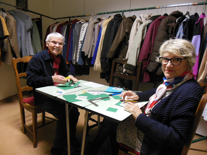- Annick et Soeur Madeleine organisent le vestiaire et confectionnent de jolies cartes !