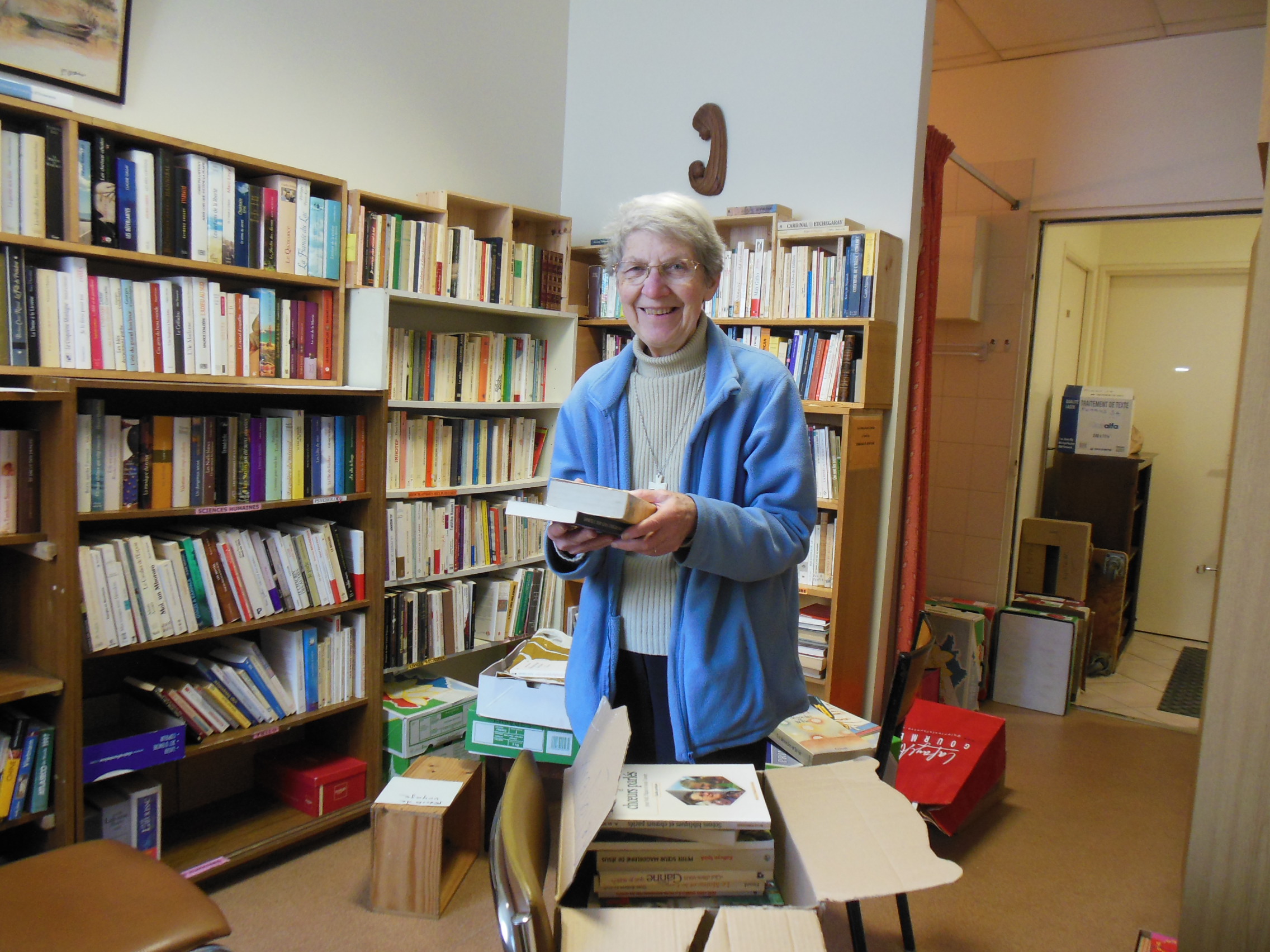 - Soeur Marie Pascale nous prépare un super stand de livres !