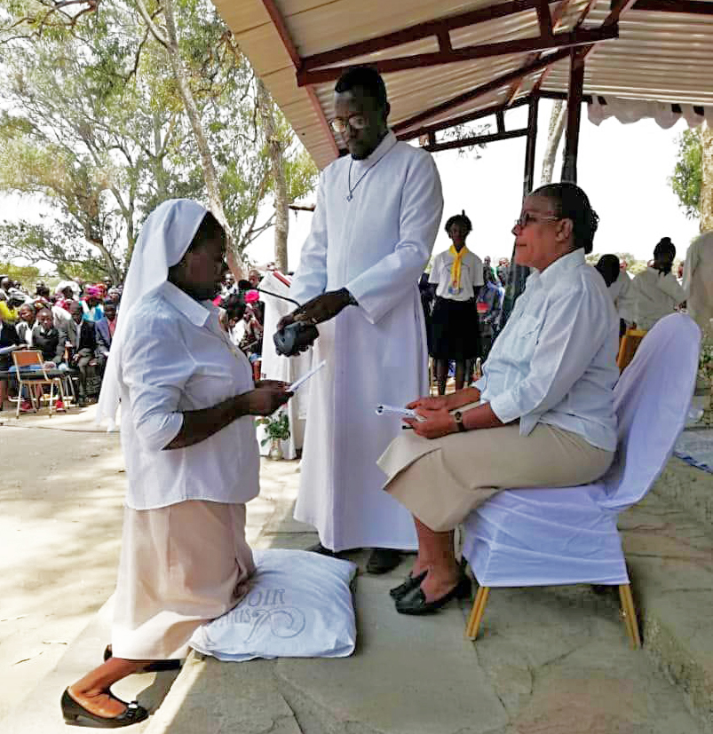 Mes Vœux Perpétuels ont été reçus par Sœur Anabela de Barros, Principale des Spiritaines du District d’Angola, au nom de notre Supérieure générale Sœur Monica Méléard, avec deux témoins, une sœur Spiritaine, et un père Spiritain.