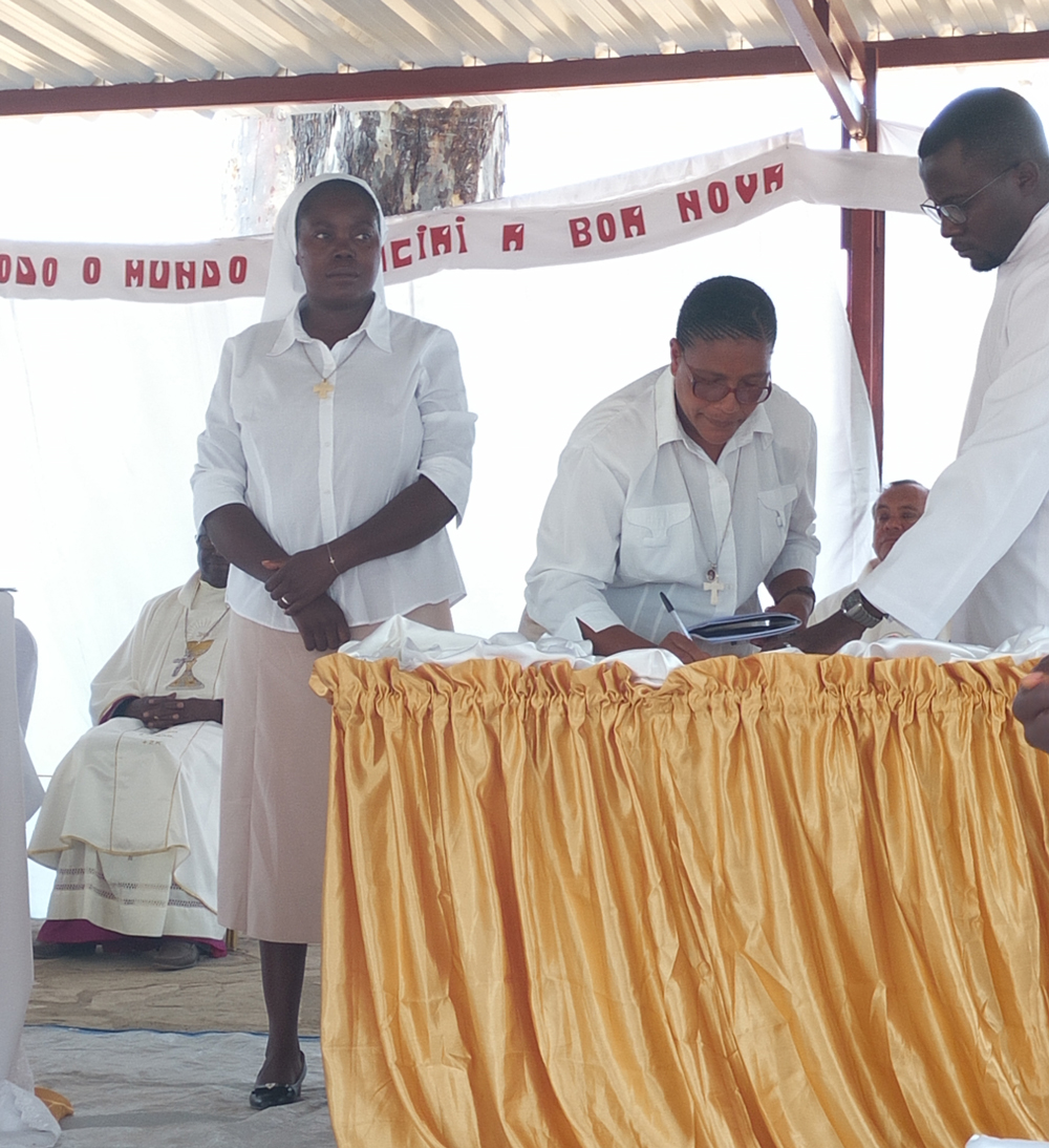 C’est au cours d’une riche et belle célébration eucharistique que je me suis engagée pour toujours dans la Congrégation des Sœurs Spiritaines. La célébration fut présidée par Monseigneur Zacarias Kamwenho, Archevêque émérite de Lubango. Avec lui, ont concélébré plusieurs prêtres venus de différents lieux d’Angola. Le matin du 23 Septembre 2018, la Paroisse Sacré Cœur de Jésus de Lubango-Quipongo, la mission du Sêndi était en mouvement.