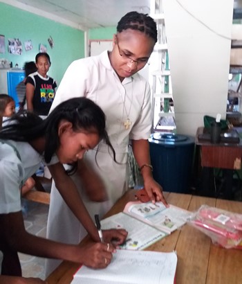 En ce qui concerne la vie communautaire, je dirais que c’est le meilleur trésor pour notre bonheur et notre bien spirituel, physique et psychologique. La vie communautaire est importante pour nous permettre de découvrir en vérité nos limites et en même temps apprendre à les assumer, ceci n’étant possible que dans la pratique quotidienne de la prière personnelle, communautaire et la correction fraternelle. La vie communautaire est réellement équilibrée, nous le sentons chaque jour, avec les temps forts de récollection, les réunions communautaires, les visites occasionnelles à quelques familles, les moments de détente les jours fériés, tout cela pour le bien de la communauté. Il y a aussi les charges bien partagées par chacune, il y a toujours quelque chose à faire et chacune voit le moment et le temps à y passer. Nous sommes parfois fatiguées, nous revenons à la maison et durant les repas nous partageons ce qui a été vécu, préparant ainsi le jour suivant.