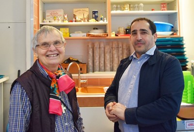 Chaque vendredi, je rejoins le Centre pour des services aux personnes. C’est Idriss qui me reçoit et me donne mon travail, il a le souci de me faire de la place, de me mettre à l’aise. Un jour, regardant des bibelots sur une étagère il me dit : « Jésus aussi est là ». Je lui dis « Tu es chrétien ? » Il me dit : « Non, je crois au Dieu unique, pour nous Jésus est un prophète comme Moïse et les autres prophètes ». J’ai d’autant plus admiré son attitude de bienveillance et de respect habituels. Le matin, je reçois les tickets pour le petit déjeuner et fais entrer nos amis cinq par cinq, attendant que les autres soient servis. Il y a de la discipline ! C’est l’occasion de les saluer, de demander comment ça va, d’échanger un sourire. Beaucoup ne parlent pas français, car ce sont tous des nouveaux arrivants. Ils parlent par l’expression de leur visage ouvert. Après le petit déjeuner nous préparons les plateaux pour le lendemain ou bien je les reçois à la buanderie. Nous leur donnons le nécessaire pour la douche et lavons les habits de ceux qui le demandent.