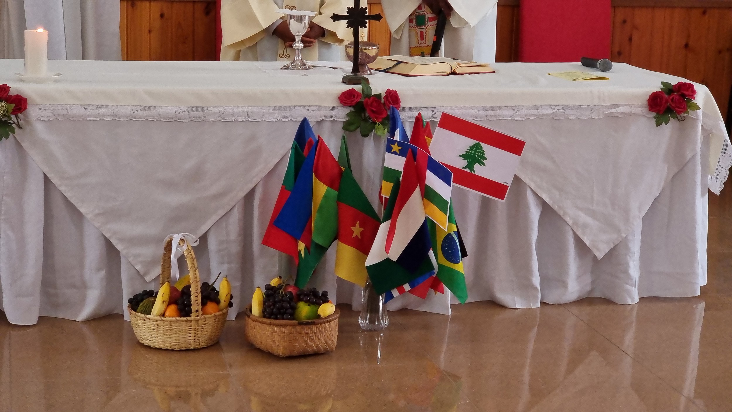 - Offrandes déposées au pied de l’autel.