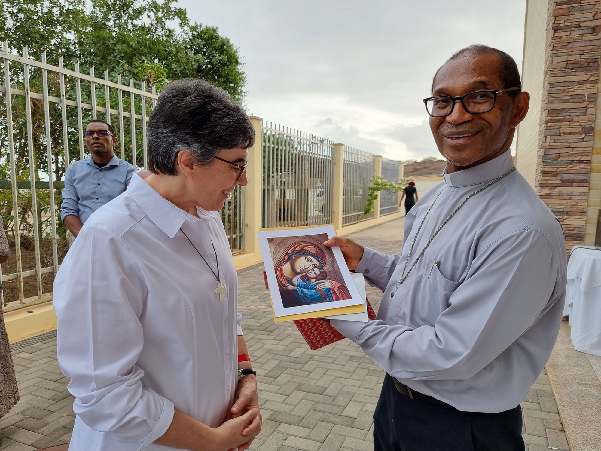 - Au nom du Conseil général, Soeur Olga Fonseca offre au Cardinal Arlindo, une image souvenir de Notre Dame de la Bienveillance.
