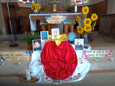 Une fois installées, nous avons de nouveau confié notre mission au Seigneur par une oraison dans un petit oratoire, préparé dans un coin de la maison. Puis, nous avons marché dans le village pour saluer les habitants. Une dame très gentille nous a accueillies et nous a donné le numéro des Sœurs de la Providence de Portieux, qui nous ont ouvert leurs portes sans hésiter. Elles nous ont parlé de leur fondateur et nous ont par la suite introduites auprès du Maire du village de Cutting.